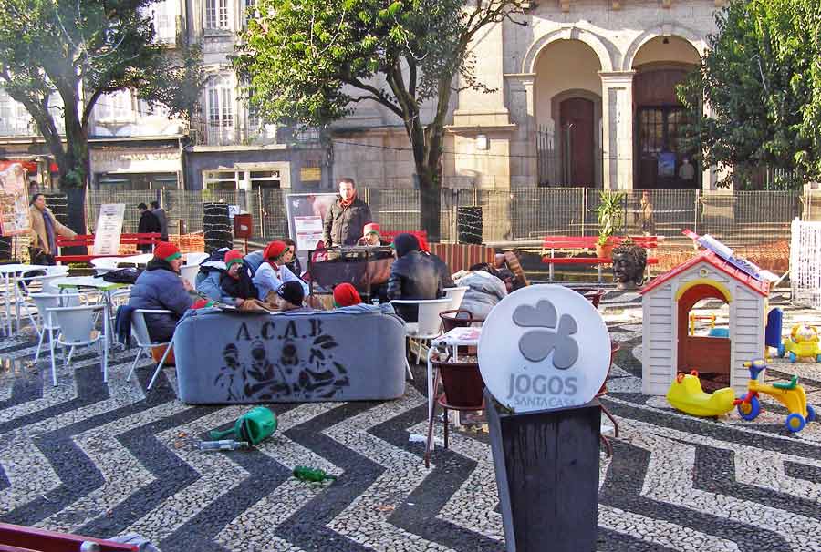 Foto:http://araduca.blogspot.com/ Um dos números menos consensuais do programa das Festas Nicolinas é o das Roubalheiras, que consiste no furto de tabuletas, vasos de flores e outros objectos que se encontravam mais à mão de semear. Os objectos retirados pelos estudantes dos lugares respectivos eram levados para o Toural, onde ficavam a adornar o pinheiro. Este acto acontecia na mesma noite das posses (4 de Dezembro) e realizou-se, pela primeira vez, aquando da restauração das Nicolinas em 1895. Nesse ano, o jornal "Religião e Pátria" noticia umas inofensivas brincadeiras de rapto de tabuletas, vasos, mesas, etc. que na manhã de 5 se viam fazendo bric-a-brac em volta do pinheiro. Nos seus primórdios, esta tradição era conhecida pelo título sugestivo de rapto das tabuletas, por serem os letreiros que se encontravam às portas das lojas, dos serviços e dos profissionais liberais as principais vítimas dos furtos. Mas também não faltavam os bichos de capoeira. A designação roubalheiras é quase tão antiga como aquela, embora menos generalizada nos seus primeiros anos. A roubalheira resulta da adaptação em meio urbano de uma antiga tradição do mundo rural minhoto, levada à prática por altura das festas dos santos ditos populares, em especial durante os festejos a S. Pedro, também conhecido em terras próximas da cidade de Guimarães como o dia dos atrancamentos. Por essas aldeias afora, era costume aparecerem, na manhã do dia 29 de Junho, caminhos atrancados com alfaias agrícolas, vasos, utensílios e animais domésticos, desviados dos seus lugares habituais por bandos de rapazes. Havia quem não apreciasse esta brincadeira dos estudantes. No jornal Independente, de 7 de Dezembro de 1902, defende-se que os estudantes "não deviam, com o roubo das tabuletas, desrespeitar a liberdade alheia, quando com tão severas penas pretendem conservar a própria liberdade". Não faltaram, ao longo dos tempos, suspensões e proibições desta prática. "Nós discordamos apenas das roubalheiras. Isto não está nas tradições dos festejos nicolinos e, ainda que estivesse, era um número que se devia banir, porque ofende muitas vezes e raro tem graça..., " escrevia-se no "Regenerador", de 10 de Dezembro de 1909. As censuras às roubalheiras (e também às posses) eram quase generalizadas. Até o primeiro responsável pelo ressurgimento de 1895, Jerónimo Sampaio, escrevia no "O Comércio de Guimarães", de 11 de Dezembro de 1923: Fonte:http://araduca.blogspot.com/